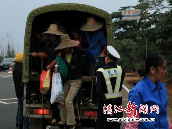 湛江新闻网讯:为扎实开展2014年今冬明春道路交通事故预防工作,遏制重特大交通事故的发生,雷州市公安局交警大队认真分析辖区内的交通状况,针对入冬以来,采摘青椒、砍甘蔗务农人员增多,农村农用车、拖拉机违法载人增多的现象,加强国、省道和乡村道路的巡查力度,严查严处各类交通违法行为10多起,其中查获一辆农用车竟违法运载民工23人。