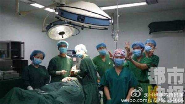 该图为引起网上热议的手术室自拍照。当时有网友爆料称,西安某大医院手术室手术室内,正在进行手术的医护人员在手术台边自拍和合影。