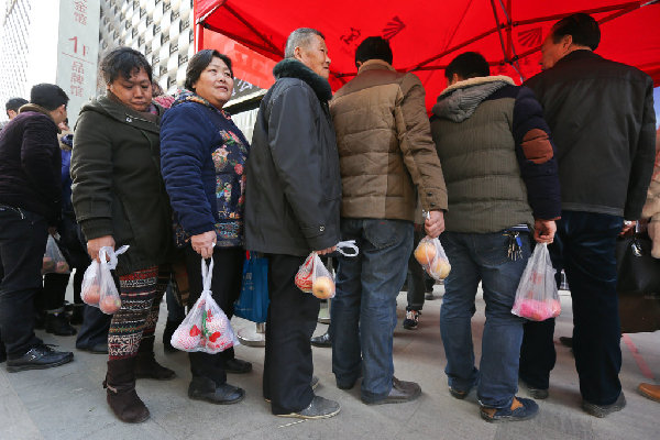 郑州一企业迎圣诞用苹果换黄金 市民排数十米长龙