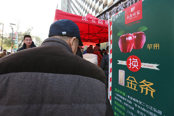 郑州一企业迎圣诞用苹果换黄金 市民排数十米长龙