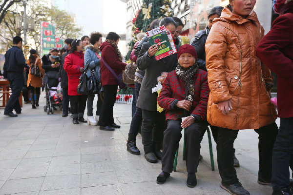 郑州一企业迎圣诞用苹果换黄金 市民排数十米长龙