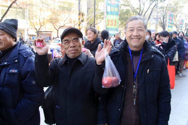 郑州一企业迎圣诞用苹果换黄金 市民排数十米长龙