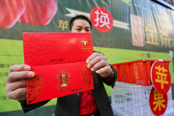 郑州一企业迎圣诞用苹果换黄金 市民排数十米长龙