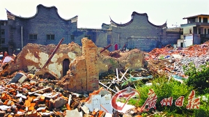 位于福建省福州市仓山区城门镇的胪雷村地处城乡结合部,本是这一带很富足的大村庄。这个村庄历史悠久,人才辈出。它的后代里最出名的有数学家陈景润、海军上将陈绍宽。因为火车站福州站的建设,胪雷村被征地拆迁,考察队员看到,全村几乎都被拆完了。村庄满目疮痍,遍地都是瓦砾砖石。面前就是福州火车站。当地政府已经把祠堂连同村庄卖给了房地产公司。