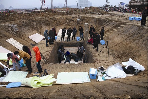 位于荆州火车站东南的夏家台古墓群258号战国楚墓。荆州中学新址在郢城南,新火车站东南,在13万平方米范围内发现楚、汉、唐、宋、明墓400多座。258号墓是战国中晚期一座中型墓,距今约2400年,比屈原约早百年。