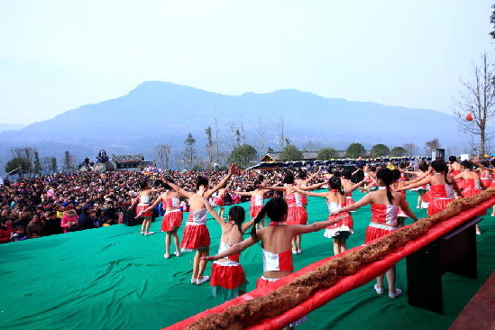 从图片中,可以清晰地看到“2014首届四川·南江大酥肉节”的字样。其中2张图片中,大约二十多名看上去只有10岁左右的小女孩身着红色短裙,赤膊光膀、后背半露正在舞台上跳舞;另一张图片中,一群看上去年龄更小的小女孩穿着白色连衣裙,在一名年轻女子的带领下正在跳舞。图片中,舞台下的观众人山人海,却都穿着厚厚的御寒衣物。图片来自麻辣社区论坛
