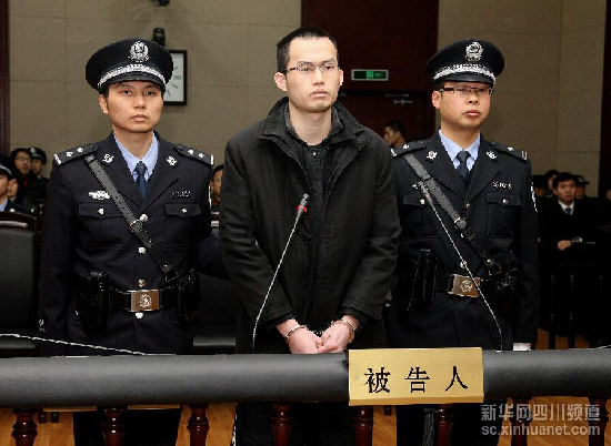 1月8日,被告人林森浩在法庭上。当日,上海市高级人民法院对复旦学生林森浩投毒案二审公开宣判:驳回上诉,维持原判。一审判决中,林森浩被判处死刑。(新华社记者 陈飞 摄)