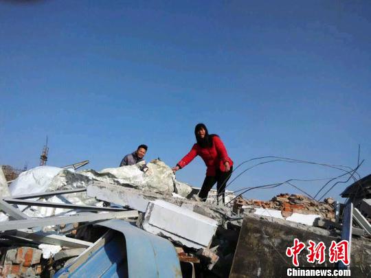 18日下午,记者在事发现场看到,遭到强拆的这家月饼厂目前已成一片废墟。而张际堂的妻子陶秋香和儿子两人正在试图徒手扒开大片碎砖,他们称,“被砸后卧室内还有现金被埋在了下面”。