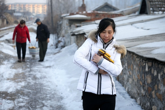 现在的张晶无论到哪里都带着两个手机,路上始终在关注网店的动态,一有订单就张罗生意、联系快递。张晶的两个侄子一个在本溪沟口镇帮她收货寄往沈阳,一个在沈阳帮她发货。图为这次从刘国志家收到45瓶蜂蜜,感觉质量有保证,张晶心里很欣慰。