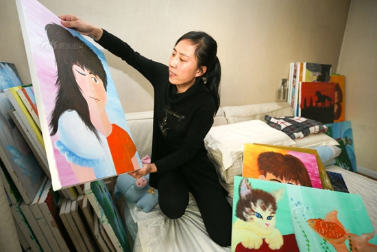 2015年1月6日,张晶在北京租住的房子中。去年起,她和儿子离开沈阳来到北京,租了个一室一厅。现在她一边开着网店,一边照顾着孩子,最近还准备给儿子办一个画展。儿子强强曾因绘画天赋引起关注,之后的抄袭风波带来质疑。目前强强在跟北京宋庄的老师学动漫。