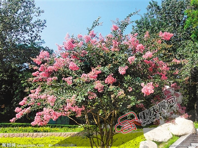 紫薇树:是中国珍贵的环境保护植物。它是千屈菜科落叶乔木,高可达10米。每年夏秋季开花,每花序可开放50天左右,全株花期长达4个月之久。是优良的园林观赏花木,亦是良好的树桩盆景种类之一。
