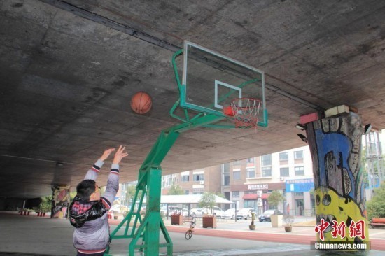 2015年1月25日,在浙江绍兴市区104国道北复线附近的越西廊桥下,几个孩子正在微型田径场内锻炼身体。据了解,这个微型田径场是一家文化创意公司所建,目的是为了鼓励公司员工及周边街区的居民进行日常身体锻炼。该微型田径场设有200米跑道四条,标准篮球场一个。田径场充分利用了大桥下面原本被浪费的空间,在绍兴乃至全国都属罕见。