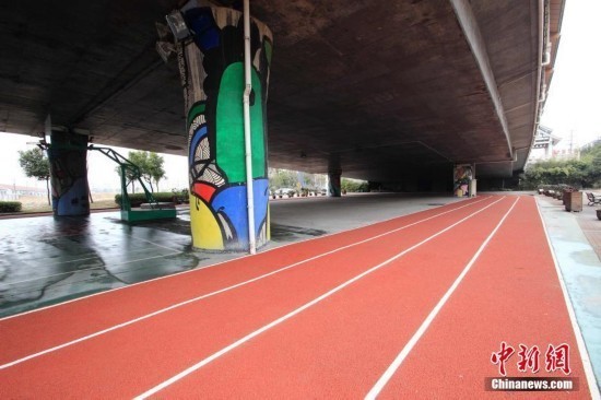 浙江绍兴一微型田径场建在廊桥下 跑道球场俱全