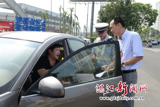 执勤时主动向驾驶员发放宣传单张,提醒主动申领“绿色环保标志”。