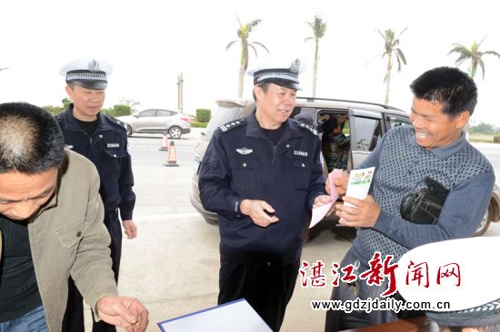 交警支队林德邦政委现场提醒司机安全驾驶,并发送春运宣传资料。