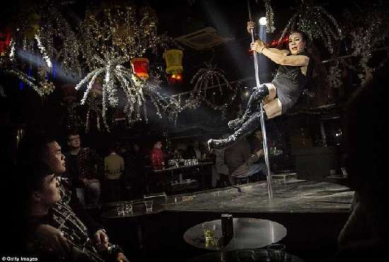 这位上了年纪的“变装皇后”表演起钢管舞来也是有模有样。