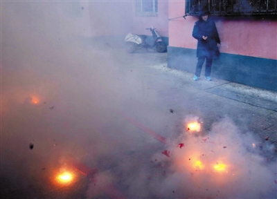 资料图:庆祝洗清弟弟的冤屈后,大哥昭格力图点燃了鞭炮。