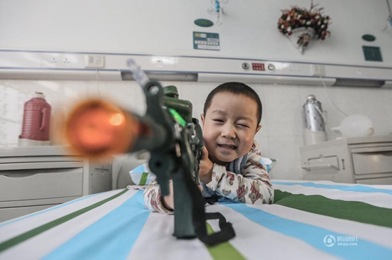 4岁多的孩子正是爱玩爱闹的时候,不过看着小峰,周围的病友也都十分大度,他们都说:这孩子太可怜了。然而“可怜”这个词却会让小峰不高兴,他内心里有些排斥,也不喜欢别人去讨论他的腿。
