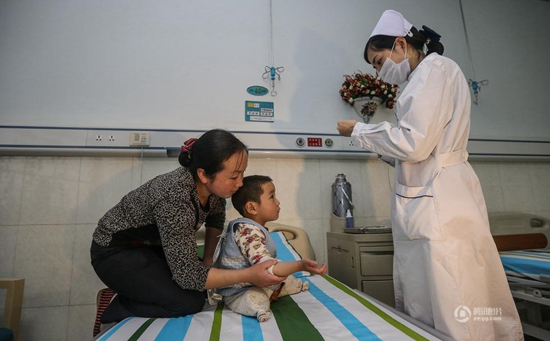 长期打针,孩子的手背上已经有一块疤痕,这和他的体质有关。但小峰已经不会哭了,可张喜玉还是很揪心。