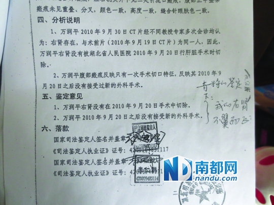 万润平怀疑,他的右肾在这次手术中被“摘走”。而院方和当时的手术医生对此否认,他们给出的解释是:右肾萎缩。