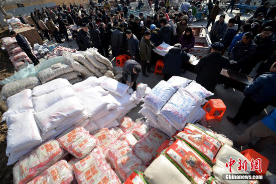 河北省永年县广府镇东街村党支部书记宋福如投入220多万元为全村人置办年货。
