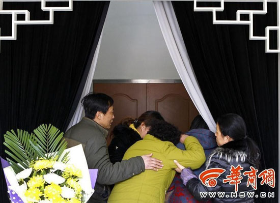 2月8日下午,在高陵的西安市第二殡仪馆,李娜的爸爸李勇利和亲人守在灵前。李勇利说,亲戚已去洗照片去了,事情太匆忙了,都没来得及给孩子买点水果或零食供着。