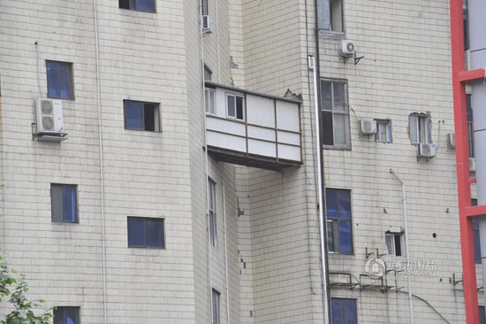 2015年2月9日消息,成都,在市区石灰街路口两座楼宇间现一个“空中板房”,引得过往市民驻足围观。原来所谓的“空中板房”,并不用于住人,而是一家酒店用来连接写字楼方便客人进出的“空中走廊”,走廊还开了两个口子作为窗户,不知是用来通风还是观光的。
