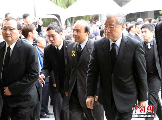 图为台湾地区政界高层毛治国(右1)抵达公祭现场。