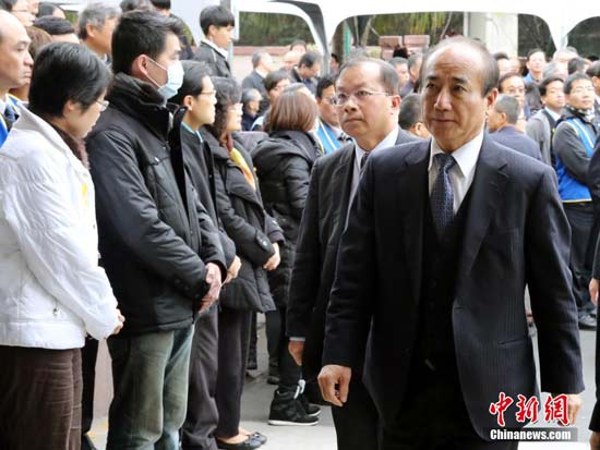 图为台湾地区政界高层王金平(右1)抵达公祭现场。