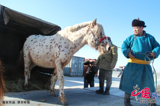 中蒙双方在二连浩特口岸进行了简单的交接仪式,两匹蒙古马阿尔泰和克鲁伦入境后,立即吸引了大量粉丝来拍照留念。