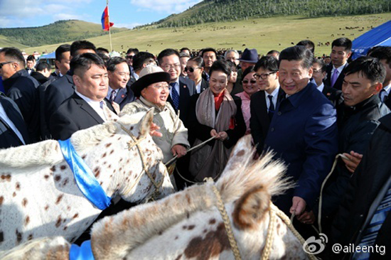 延伸阅读:2014年8月22日,习近平夫妇访问蒙古,获赠两匹蒙古马