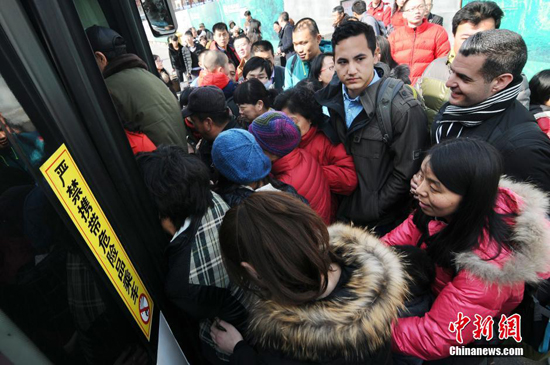 2015年2月23日,返程进入高峰期,青岛发往开发区方向的汽车客流爆满。