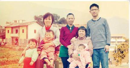 今年春节回泉州老家,他们一家人再次来到大姨家的顶楼,拍了一张合照。拍完后,陈鹏辉将两张照片合成在一起。