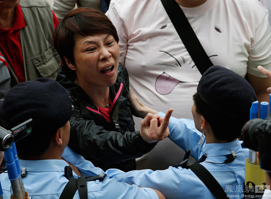 3月1日,继2月8日和15日香港个别激进团体在屯门和沙田,以抗议内地“水货客”影响区内居民生活的名义围堵挑衅内地旅客后,3月1日又有激进团体发起行动,到元朗滋扰商户。香港市民及一些社会团体对此行为表示极度愤慨,并要求警方严正执法。图为双方互相指骂,要由警员分隔,呼吁双方不要聚集。