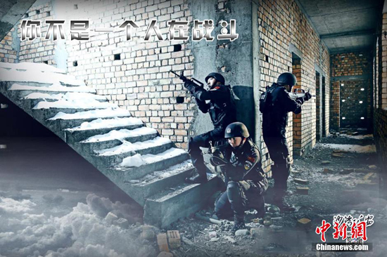 整版照片以沙湾公安民警威武雄壮、正义凛然、铁骨铮铮的硬汉形象将“忠诚勇敢、爱民奉献、团结进取、公正廉洁”的新疆公安精神16字方针表现的淋漓尽致,同时也向全社会表达了沙湾县公安局全体民警积极参与严厉打击暴力恐怖犯罪,建设丝绸之路上休闲之都的的决心。图片来源:沙湾县公安局提供