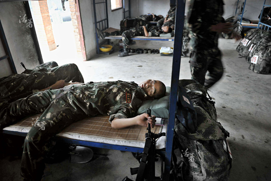 早操后,队员们利用点滴时间休息。对于他们来说,只有昨天是最轻松的日子。