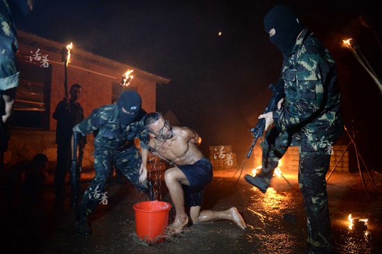 1992年出生于甘肃的25号队员(中)主动参加最残酷的反战俘训练,锤炼自己的意志。