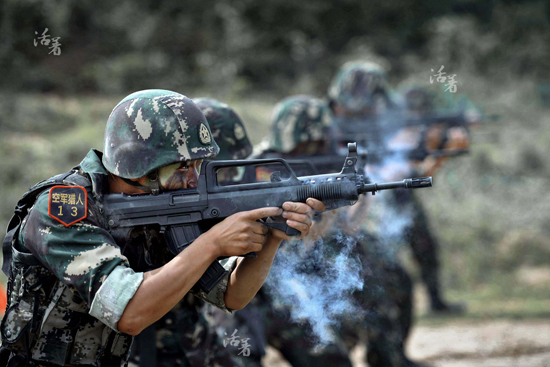 1994年出生于辽宁的13号队员(左一)进行快速出枪射击训练,在集训中他以综合成绩第一的名次获得集训勋章。
