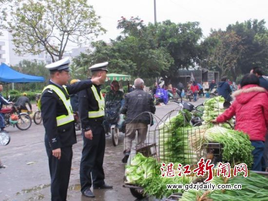 廉江交警大队谢海云大队长带领大队综合股来到农贸蔬菜交易点实地调研