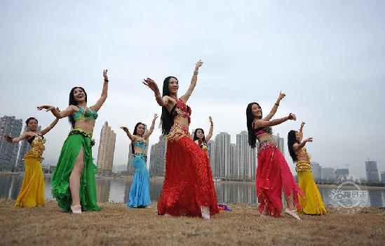 3月8日,山西省太原市汾河公园南中环桥处,30余名肚皮舞爱好者聚集于此,以集体跳肚皮舞的方式迎接三八妇女节的到来。据了解,由于平日肚皮舞训练都是在温度适宜的教室内进行,此次以户外课形式在省城尚属首次。