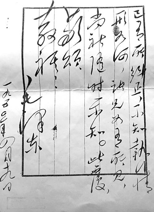“毛主席回信的事很快传遍了当地。”回忆往事,邹娟娟的妹妹邹青青记忆犹新。她说,母亲李淑荷把这封珍贵的毛主席亲笔回信放入镜框,并进行了装裱,挂在客厅展出。“每天都有人来参观,很快大家都知道我家有这个‘宝贝’了。”父亲1960年去世时,曾叮嘱家人保管好这封信。后来到了“文革”期间,这封信被锁进木箱中,轻易不再示人。