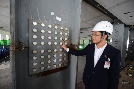 连接钢架结构的螺丝。中新社发 杨华峰 摄