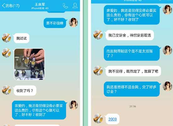 截图还显示,“王良军”为该女子买了一块价值39800元的手表。“我不觉得(招摇),既然定了(手表),就算了吧。”