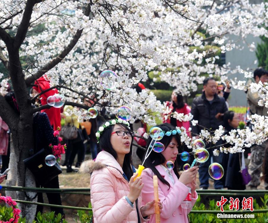 武大樱花盛开 数万游客挤爆校园