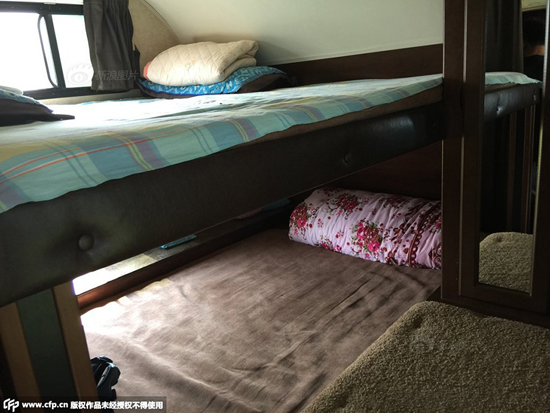 房车卧室设在房车的两端,上下铺结构,可同时供8人休息。
