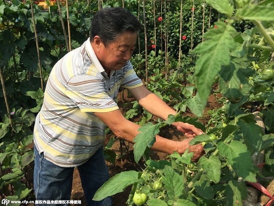 老人的菜园子位于房车一侧的三分菜地,种满了西红柿、辣椒、香菜等10余种蔬菜。“全是绿色食品,种得太多吃不完,有时也送给左邻右舍或者朋友吃。”老人将自己完全融入到当地的村民之间。“村民接纳我一个外乡人,我已经是这里的村民了。”