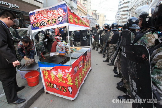 目前,全市展开占道经营整治行动。在前期给长期占道经营的摊贩下发最后通牒依然无效的情况下,泉山区城管率先对市中心最为顽固的这些“钉子户”占道摊点进行突击整治。