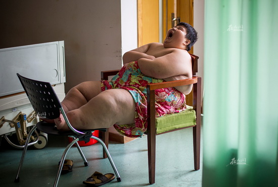 刚吃过饭的小胖睡意又起,一身肥肉玲珑浮凸。他身上穿的花裤子是曾经的“中国第一胖”梁用曾经穿过的。