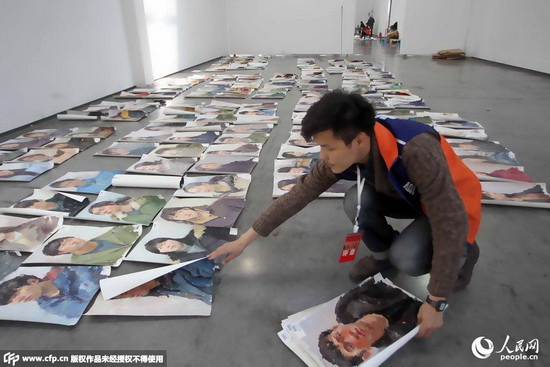 中国美院艺考阅卷 学生作品铺满整个体育馆