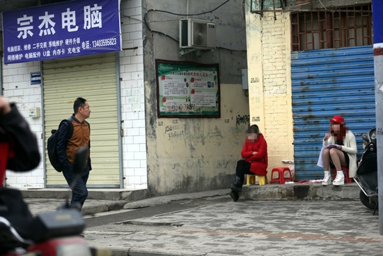 每到有行人路过的时候,站街女都会用收拾或者面部表情进行暗示。